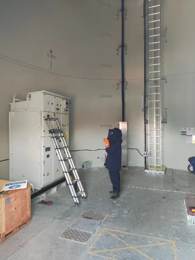 该项目LXG-40.5型环网柜风电产品为上海平高自主研发,且成套方案非常规产品,从样机研发、生产,到产品成套均为上海平高首次实施。该产品局放小于10pc,在相对压力微正压0.02Mpa、最低功能压力为0Mpa下一次性通过西高院全套型式试验。整柜采用国内最高防腐等级C5H,并采用激光焊接工艺,有效地提高了生产效率,从而降低了维护成本。为适应塔筒门限尺寸,该产品柜宽仅430mm,在产品小型化方面具备国内外领先优势,更适用于风电、光伏等新型能源领域。