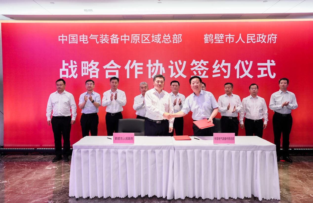 7月10日,中国电气装备中原区域总部与鹤壁市人民政府在郑州签署战略合作协议,双方将以建设新型绿色城市、打造鹤壁全域绿色能源全覆盖为目标开展战略合作。